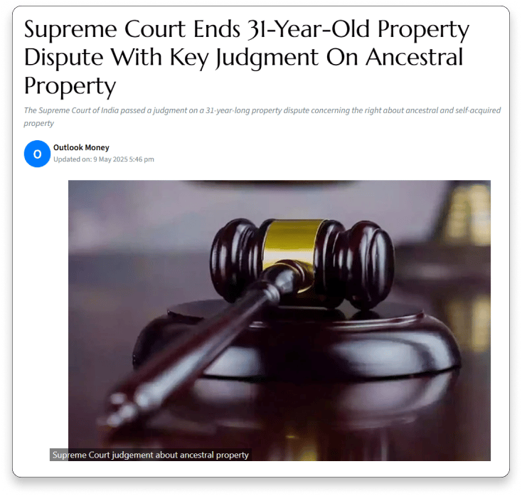 Property disputes account for 66% of all civil cases in India. A quarter of Supreme Court cases involve land conflicts.