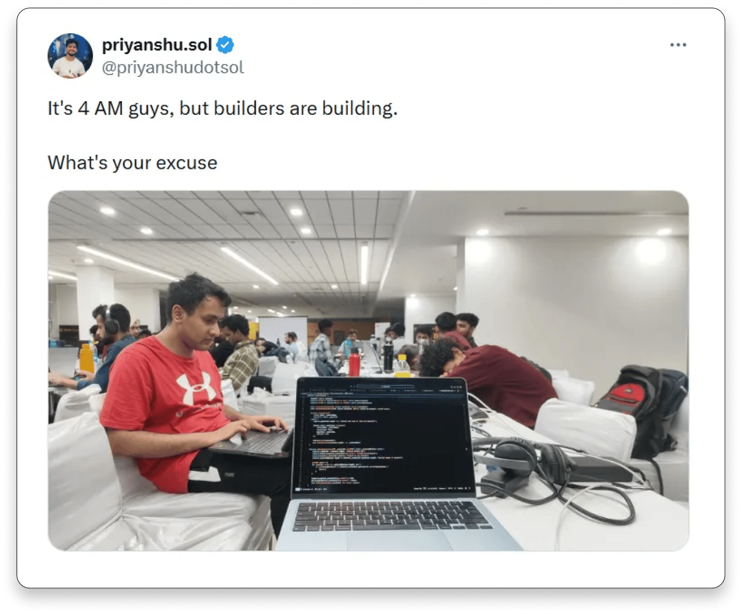 It was that viral X post from Indian web developer Priyanshu Tiwari showing young tech workers hunched over laptops at 4 AM. The caption: "It's 4 AM guys, but builders are building. What's your excuse?"